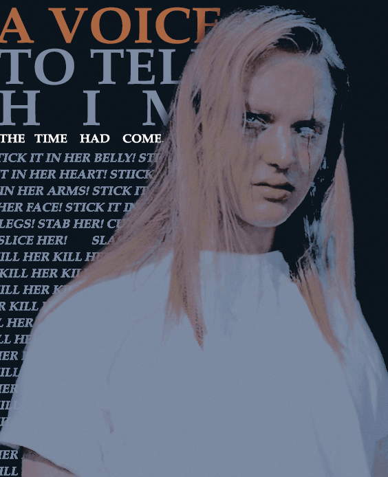 he had known judith was screaming because he saw her lips moving, but he heard nothing but the roar of the grown-up voice in his ears, telling him to kill her! kill her! kill her! he remembered the heat of her blood as it splashed his hands, and the strangely familiar smell of it.he remembered looking at her almost unrecognizable remains on the floor and hearing the little-boy voice saying, uh-oh, you're gonna get in a lot of trouble when mommy and daddy get home. and that's just what happened.and now the voice was talking to him again, and it was almost the same way except that he was a grown-up himself now, and he was a big and strong as his father, and this time nobody would be able to take him away send him someplace. ( richards & carpenter, pp. 100–101, 1979 )