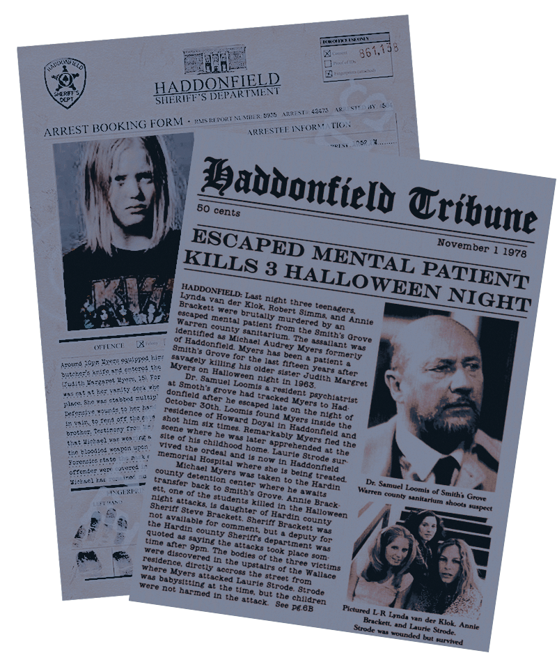 HALLOWEEN ( 1978 ): follows the events of the first / original movie. michael escapes from smith's grove and flees to haddonfield in a bid to return to the scene of a crime he had committed fifteen years prior. here, he lays eyes on laurie strode; leading up to the night of halloween, he follows her curiously and — goaded on by the voice in the back of his head — prepares to kill her. it is during this time that he breaks into the hardware store and acquires the mask that would eventually become synonymous with him. he haunts the streets of haddonfield, familiarizing himself with streets and houses that inhabit distant memories. as night settles on the evening of halloween, he embarks on a killing spree that leaves three dead, multiple people traumatized, an entire town struggling to comprehend the meaning of evil. after a formidable struggle, laurie strode survives and michael — overcome by the combined efforts of strode and loomis — disappears into the night.SMITH'S GROVE / PRE-CANON: ages six through twenty-one. takes place prior to the events of halloween, 1978. much of this verse features a verbal michael. following the brutal stabbing-death of judith myers, michael is sentenced to smith's grove sanitarium for the criminally insane. he brings evil behind the walls of smith's grove, setting prisoners and staff alike on edge. michael is placed under the care of samuel loomis and, until his escape, engages in a subtle game of cat-and-mouse in which he acts out in subtle ( yet damaging ) ways that ensure he escapes punishment — all while slowly degrading loomis' reputation as a psychiatrist. an insidious presence within the institution, michael consolidates power until he constructs smith's grove into what loomis refers to as "his own little empire." as the years pass, the thorazine injections become more frequent and instances of verbal communication become less frequent. the voice in his head grows louder still, urging him to leave / to return to haddonfield / to enact unimaginable horrors. michael bides his time until shortly after his twenty-first birthday. knowing that he will soon be retried as an adult and possibly sent elsewhere — thereby losing the power he has over smith's grove — he gives into the urge to kill and escapes on the very night he was meant to be transferred.